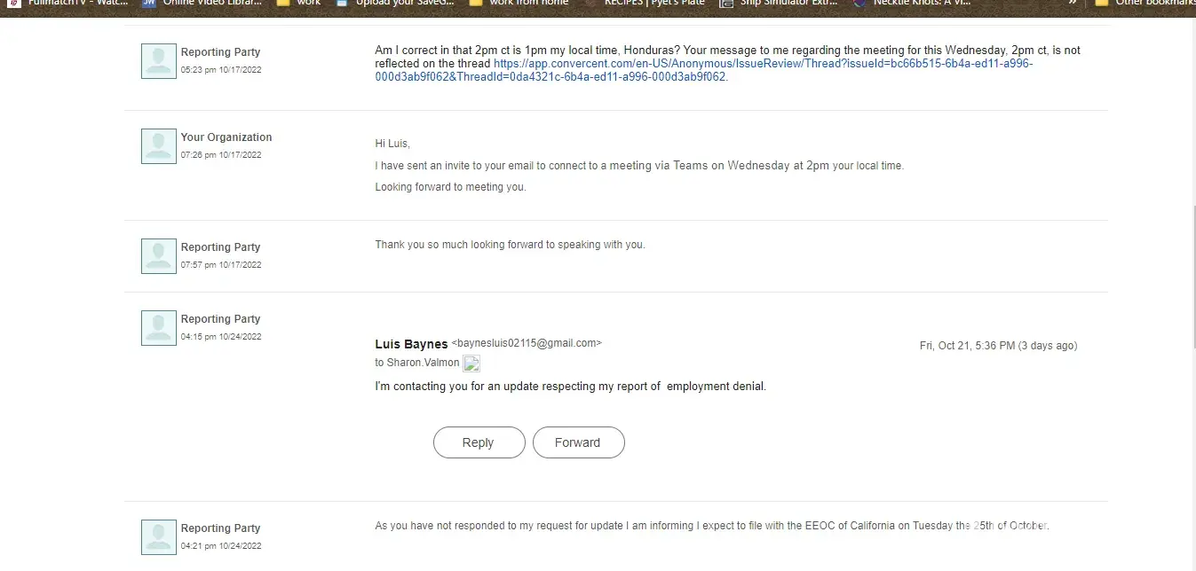 Reason for Wrongful Termination potential case: Below
