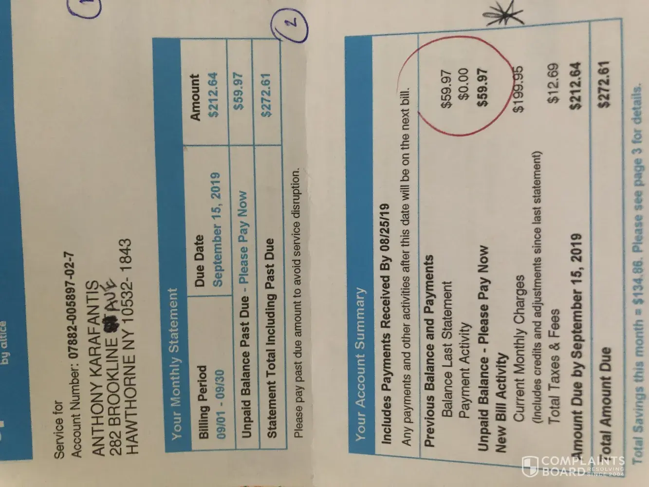 The service address is #5 3rd lane South Seaside Park, NJ, 087524. However the billing address (since we do not receive mail at service address) is : 12 Jameson Place, West Caldwell, NJ, 07006