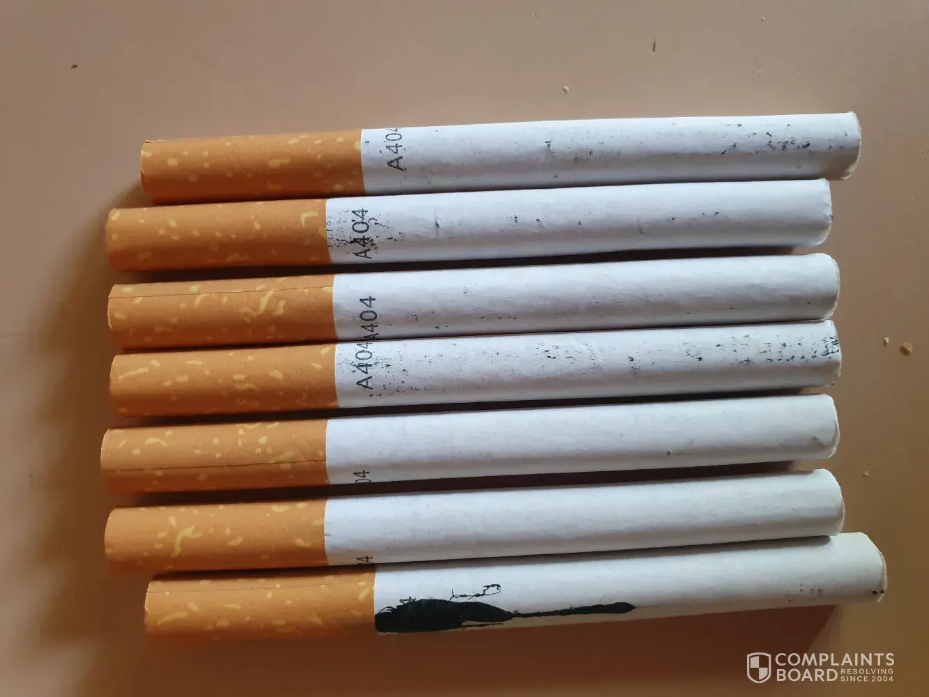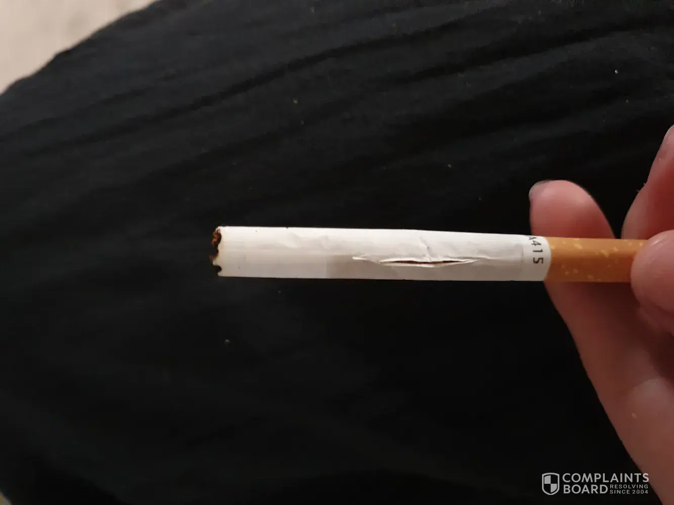 Upon opening I found half my packet of smokes had holes in the butt. This makes it extremely hard, almost impossible to smoke. Buying smokes is a luxury as it's becoming extremely expensive and to buy them faulty is very disappointing. I hope this gets resolved.
