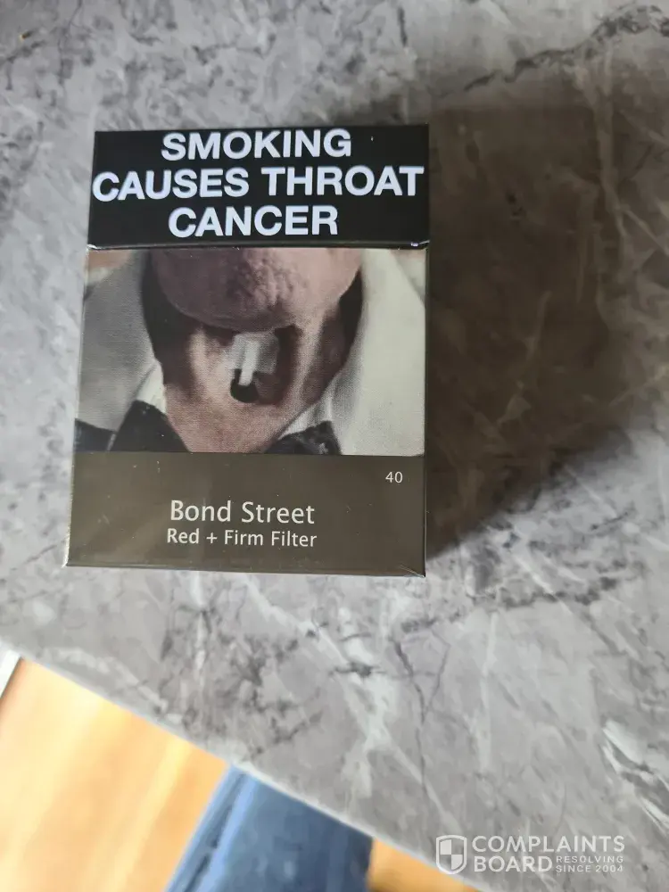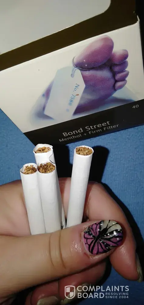 Desired outcome: Request reimbursement as this would not occur in a newly opened packet of bond street cigarettes