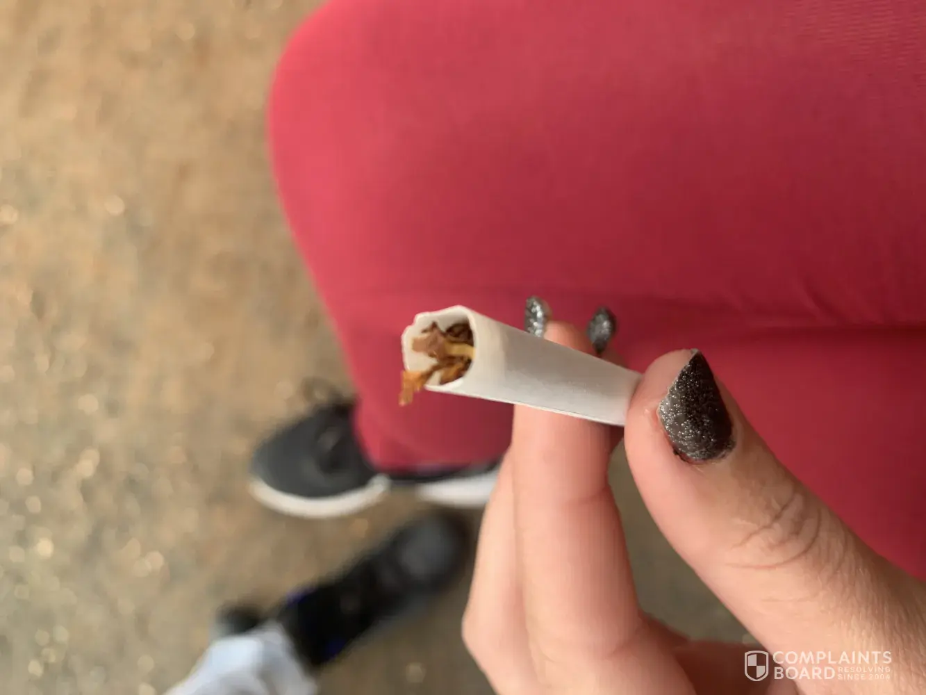 I found a spider and dirt right at the top of my smoke I have pics I was really scared as if I smoked it I might have died or got really sick please take this seriously as I have put this on all crime pages to make sure people are aware i'm scared to even have a cigarette i'm seeking compensation too please contact me on [protected]@gmail.com or [protected]