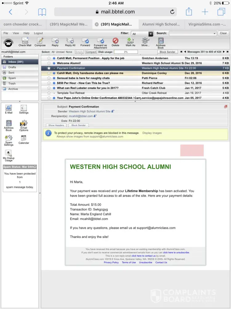 online alumnus website scam