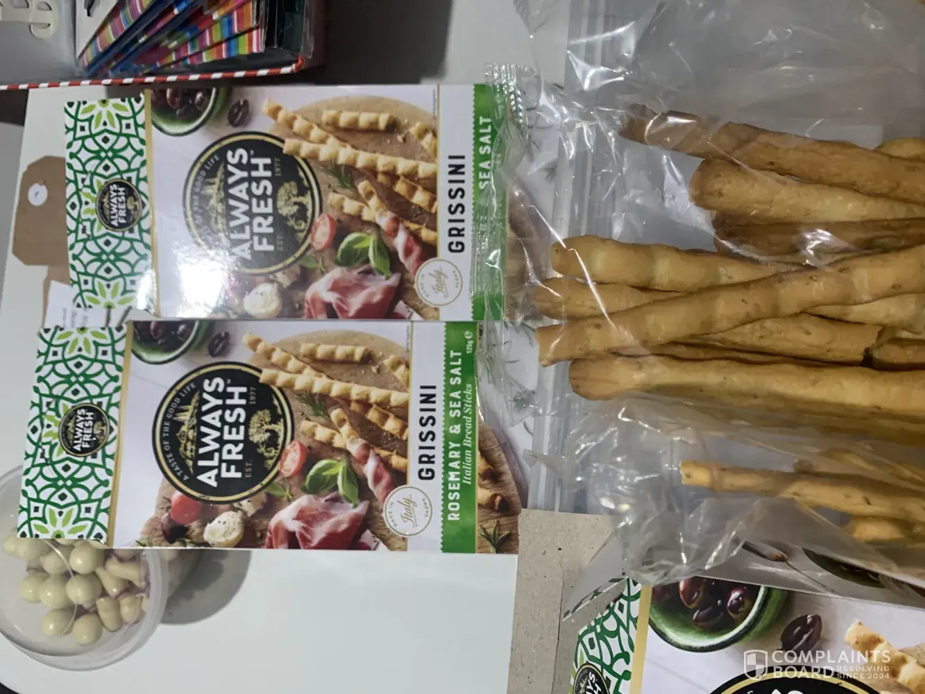 I am writing to you as we run a business and use your products in our food platters, every time we buy a packet there are always broken sticks and we are very fussy when shopping and always put delicate items separate and even when doing this there is always broken sticks in every packet. The last time we purchased which is every few days as we are a busy business, we bought three packets and could not use any of them, we pride ourselves in our business and suggest different packaging for your bread sticks as we believe all products should come intact, please find attached photos of the last three packets we purchased and also photos of how we use your products in our business