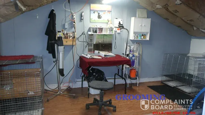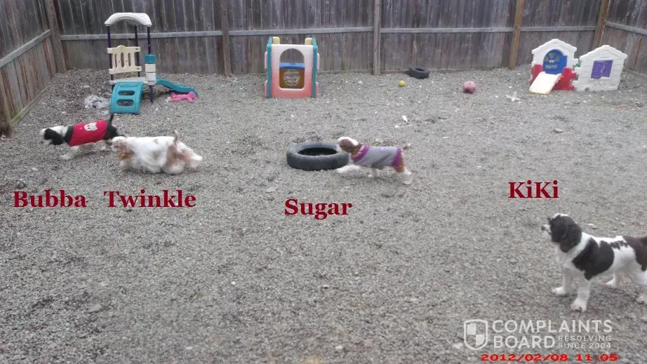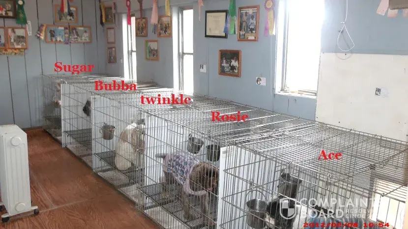 herwebsite claims she never has her dogs in crates. not ture, she has 12 dogs lined up in this little room attatched to her home they are in crates (she call them playpens) but they are crates. and there are only 5 crates for ALL the dogs. and it was not warm in there.