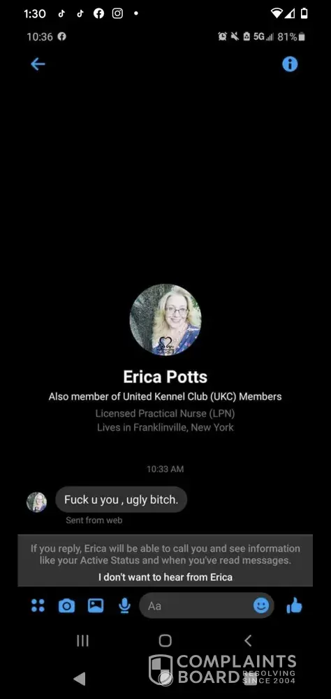 This website allows for any trashy lies to be published and then you get an e-mail saying if you pay money that it will be removed. Anybody who has anything negative to say about me, it's because I refused to sell them a puppy. Just jealous pathetic class A idiots.