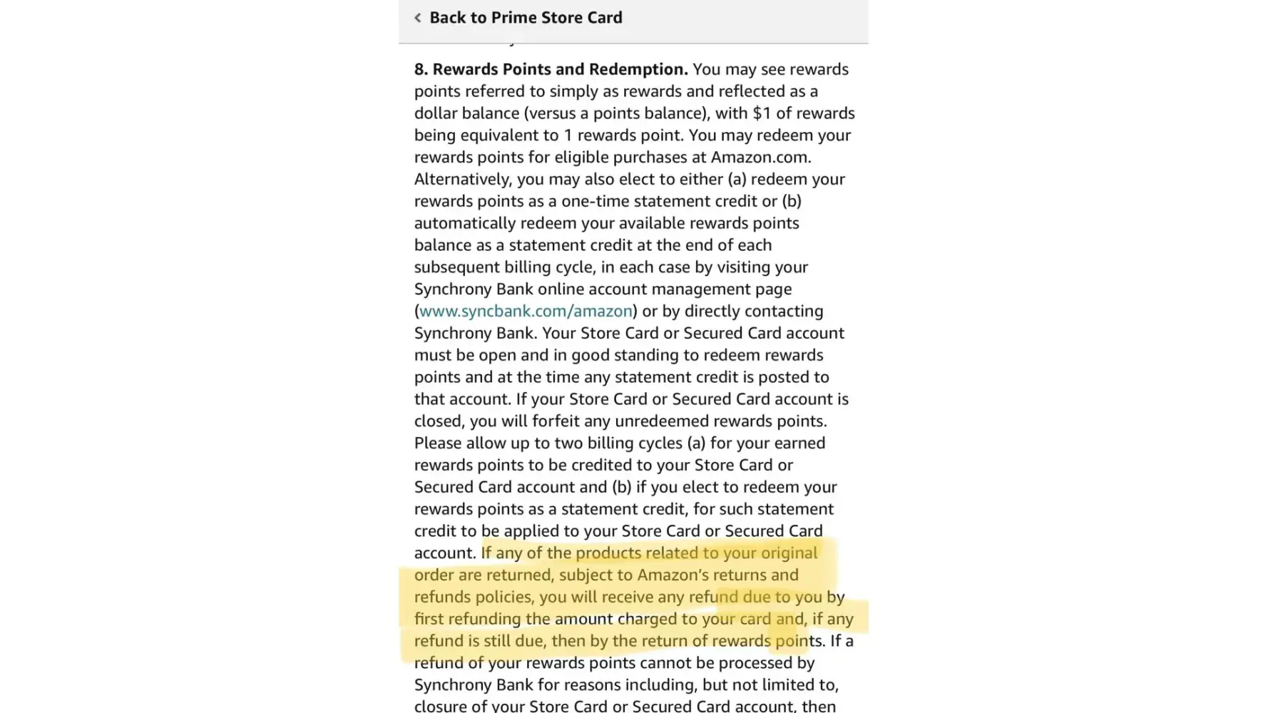 It also violates the same return policy under REWARDS POINTS & REDEMPTIONS for purchases made on my Amazon visa credit card.