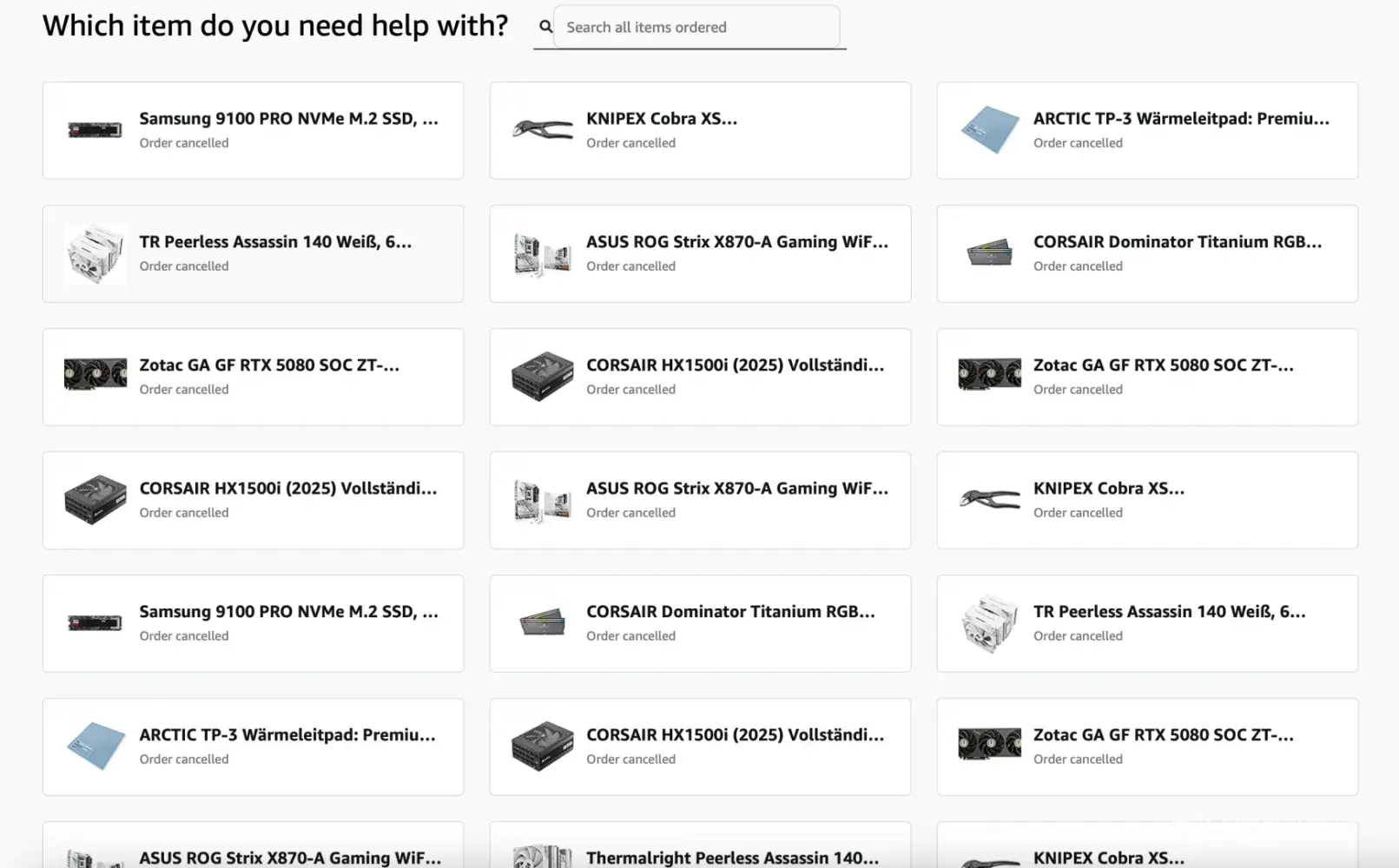 I spent several days researching and carefully selecting compatible components to build a PC. After placing my order on Amazon, my purchase was immediately cancelled, and I was asked to upload my ID for verification. I complied and received a message stating the verification would take 1–3 days. Since some of the items I wanted were running out of stock...