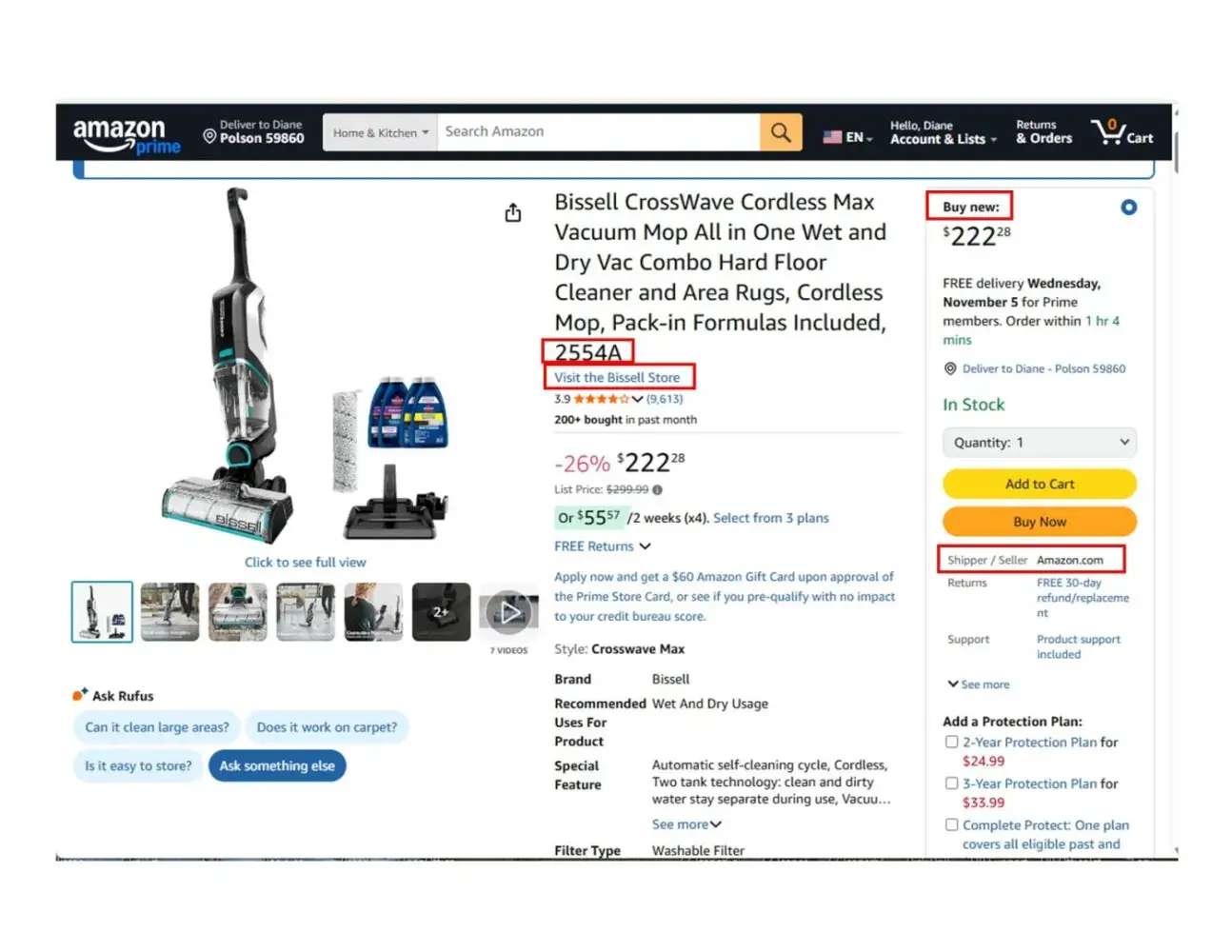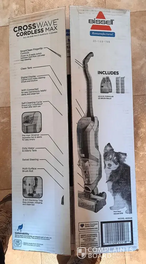 The product listing attached is advertised to be a NEW Bissell CrossWave Cordless Max Wet and Dry Floor Cleaner Model 2554A. It appears to be from the Bissell Store and the shipper/seller is Amazon. There is no mention of this being a remanufactured item or sold by a third-party vendor.