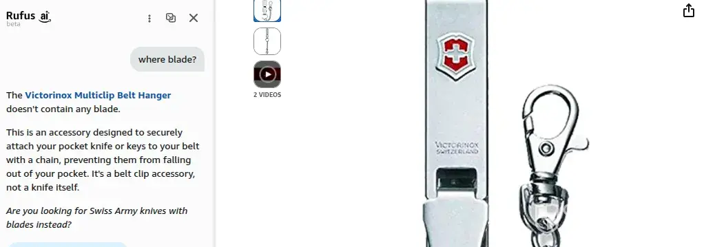 Victorinox, belt pendant, age verification also doesn't work re this item. Experian say that amazon are using data incorrectly.
