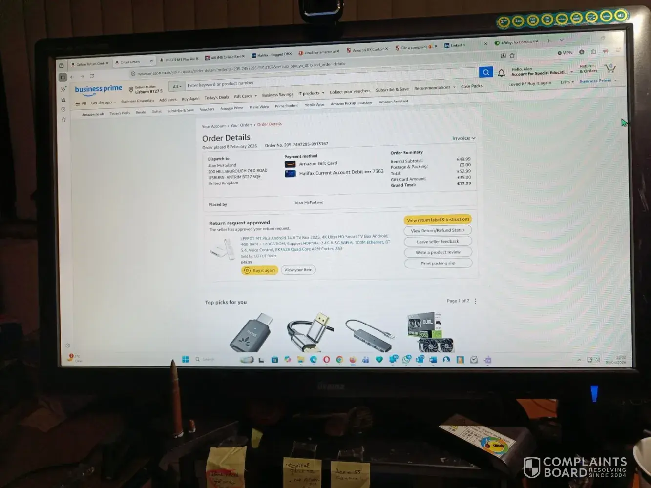 Dear Amazon Customer Service, I respectfully request a resolution to an Amazon ‘Return Issue’, that I have never experienced before. The item in question is; Order placed 8 Feb 2026 13:47 GMT Order # 205-2497295-9913167 LEFFOT M1 Plus Android 14.0 TV Box 2025, 4K Ultra HD Smart TV Box Android, 4GB RAM + 128GB ROM, Support HDR10+, 2.4G & 5G WiFi 6...