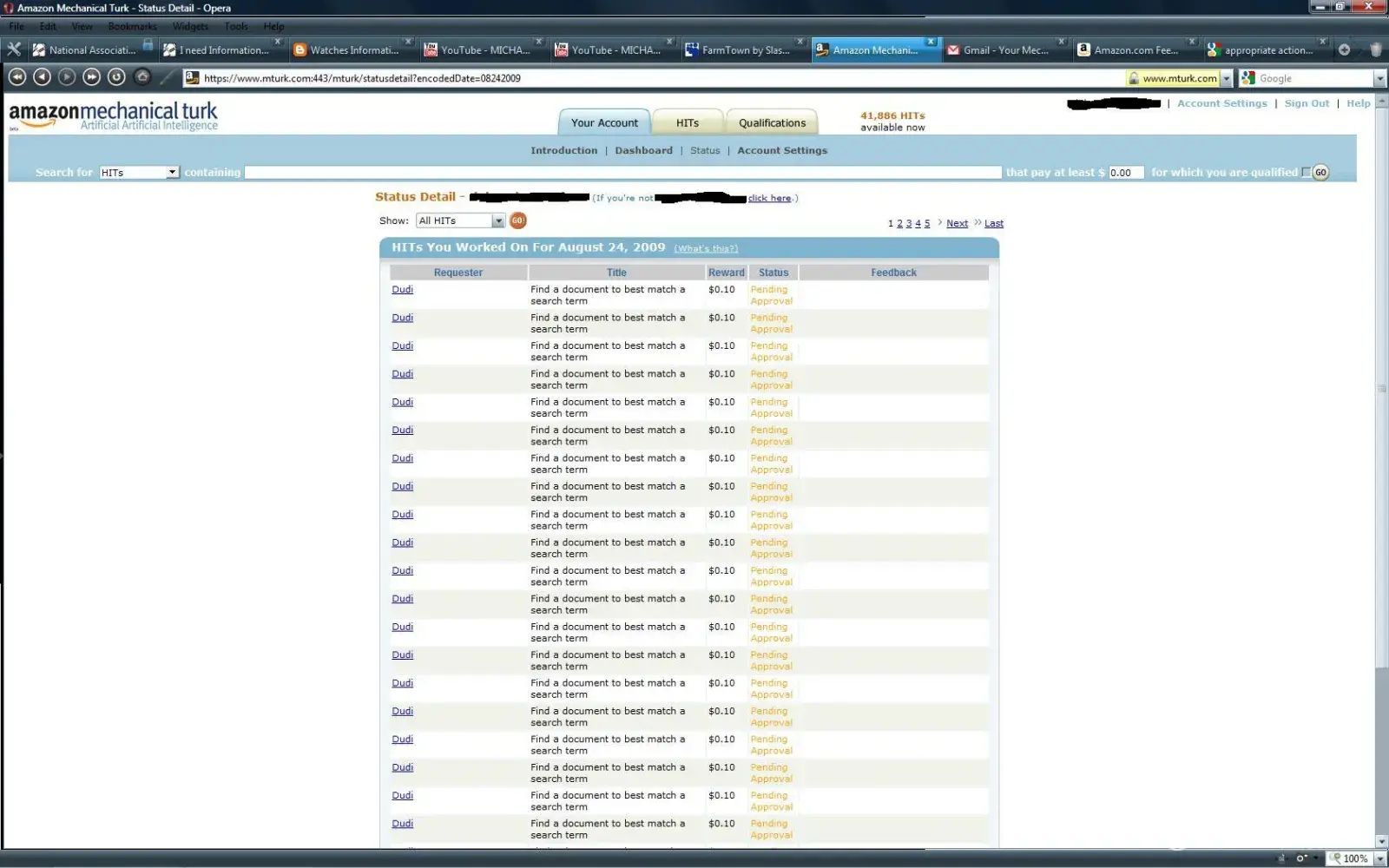 Then on this day 08/27/09 I expect a check in the mail to me for fund owed to me. I understand you will need to wait for the rest of my hits to be approved. by U.S. laws you have to pay me. Me being an American I know those laws. If within 30 days on 09/27/09 I do not recieve a check. I will make sure to report this. I am truely sorry, I do love MTing for Amazon. This is just not right. It does remind me of someone being prejudice. Many have tolds me of this happening with a contest that was held last year, I have also found others like my self that are not to happy. I just want to get paid in funds. Please do get back to me. I want to know if you will do what I asked or not. So I can take the appropriate actions.