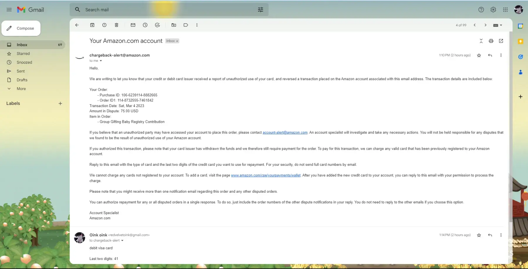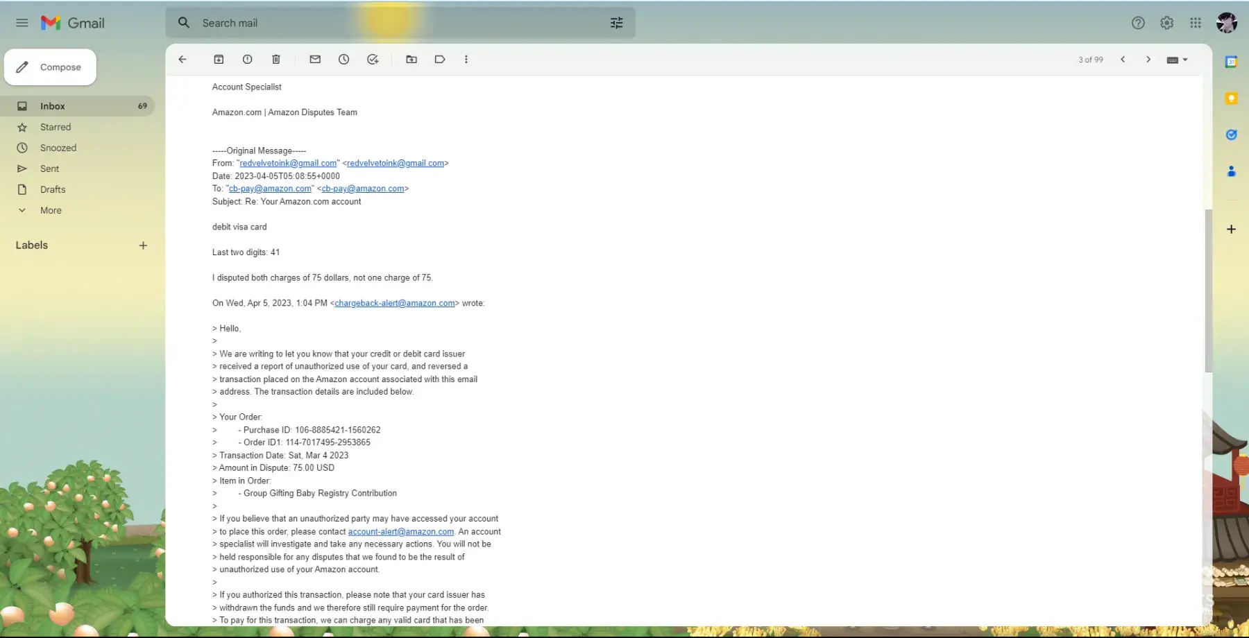 The email says it I believe this was done in error to send a copy of the gift card bla bla but i never received it because I canceled it. Literally less then 1 minute after purchase. And even so whatever they mistakenly believe about a $25 gift card purchase how the hell does that give them the right to snatch my entire balance.