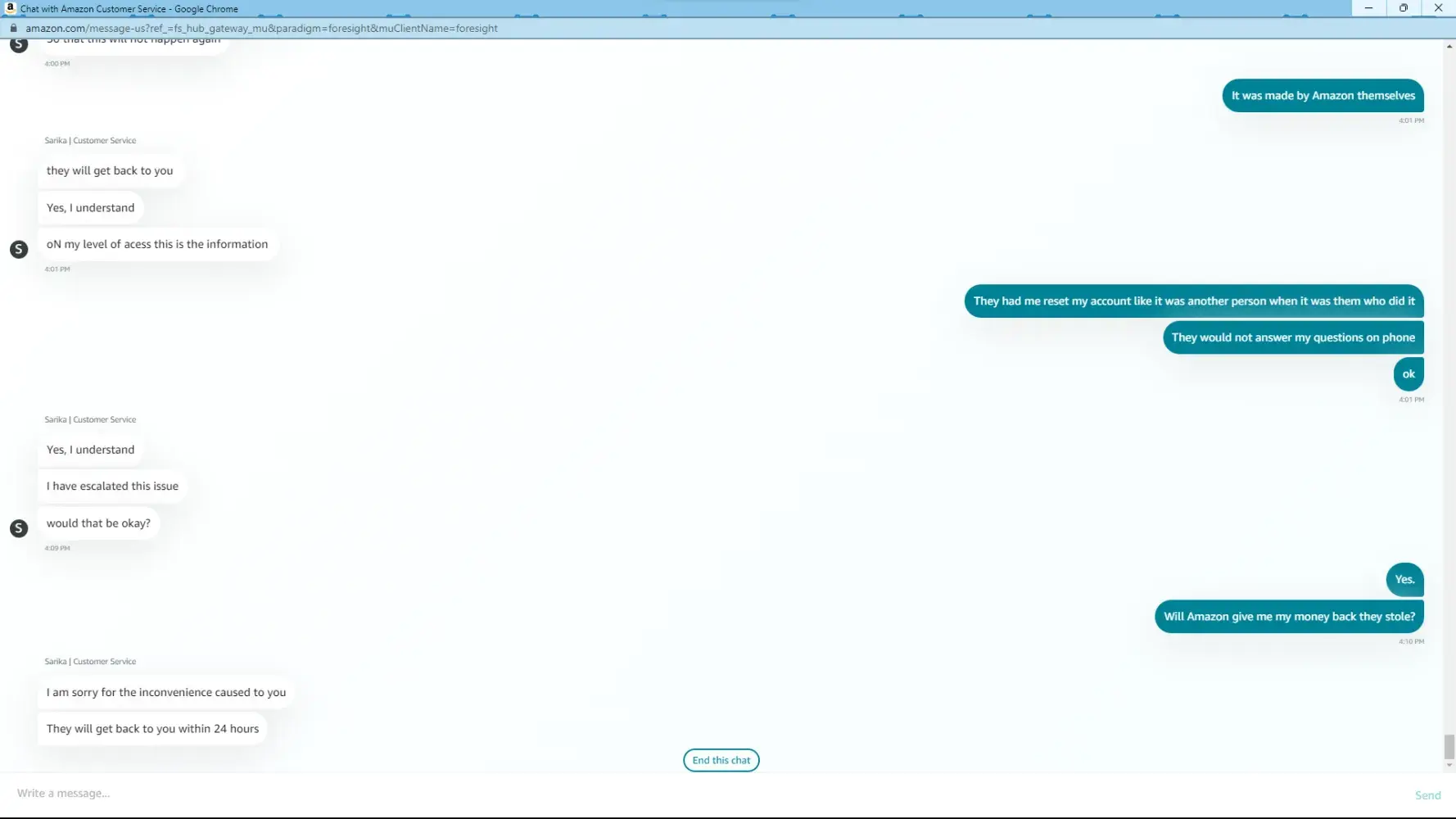 We’ll never know, because Amazon customer service doesn’t disclose any details to me (I assume the same is true with you) and their customer service is a true joke. The rudeness and disrespect I experienced on 4/17/23 by an Amazon CSR was absolutely mind blowing. Good luck, I hope you get your money back. I’d still recommend filing complaints with the regulators, and WA state AG.