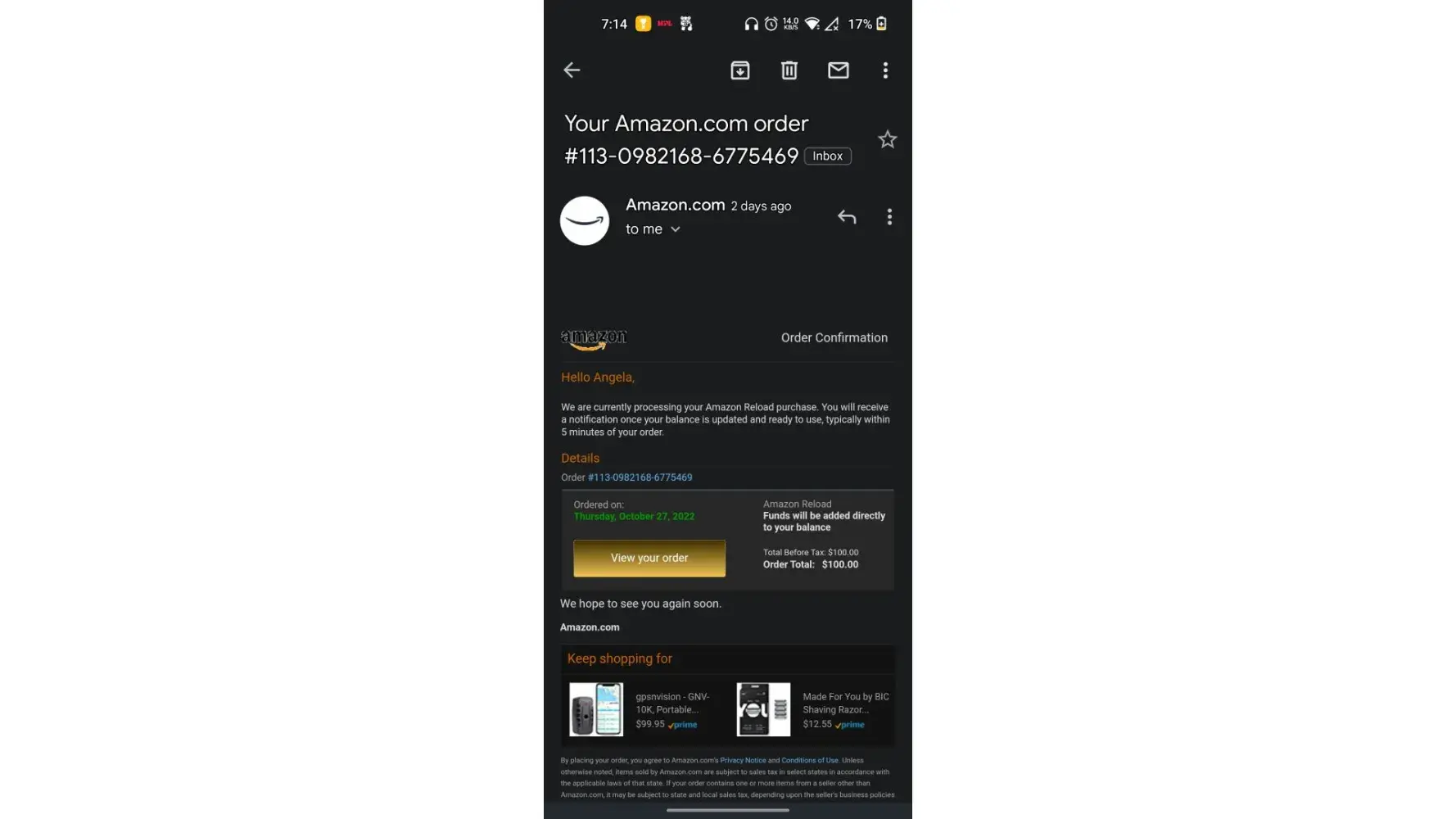 Amazon gift card balance