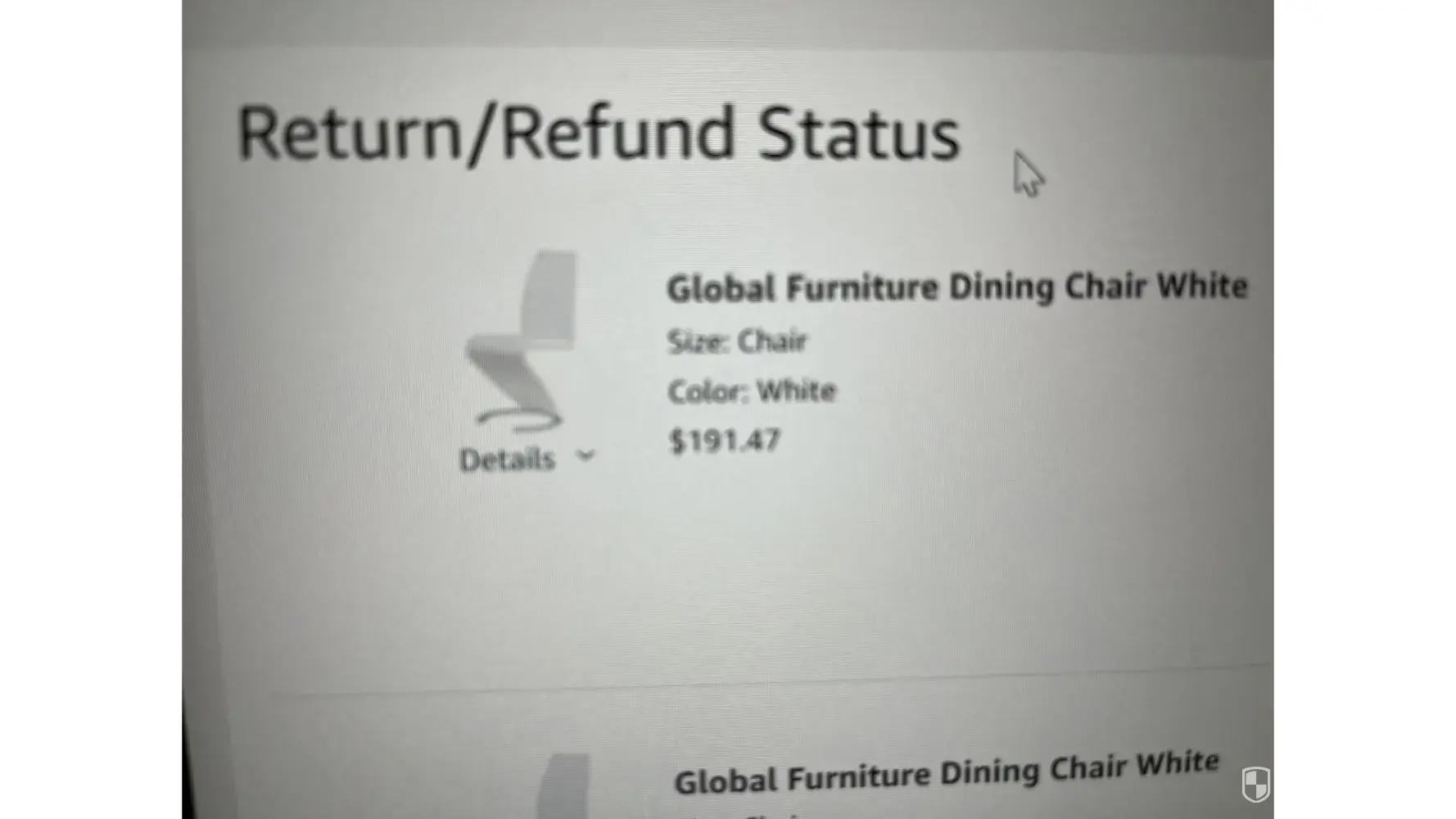 Order ID #[protected]. All 6 chairs were returned at the same time about June 17, 2022. But Amazon claims they never received the chairs and only gave me credit for 4 of the 6 chairs. I spoke to a representative and it was noted I accidently used the same label information on multiple returns. She assured me she'd investigate and come back to me. But she didn't and now Amazon is reluctant to investigate or assist. Because they have a 45 day policy. Now 5 months later and no one will assist or hear me out and everyone I speak to at Amazon tells me I had 45 days to resolve.