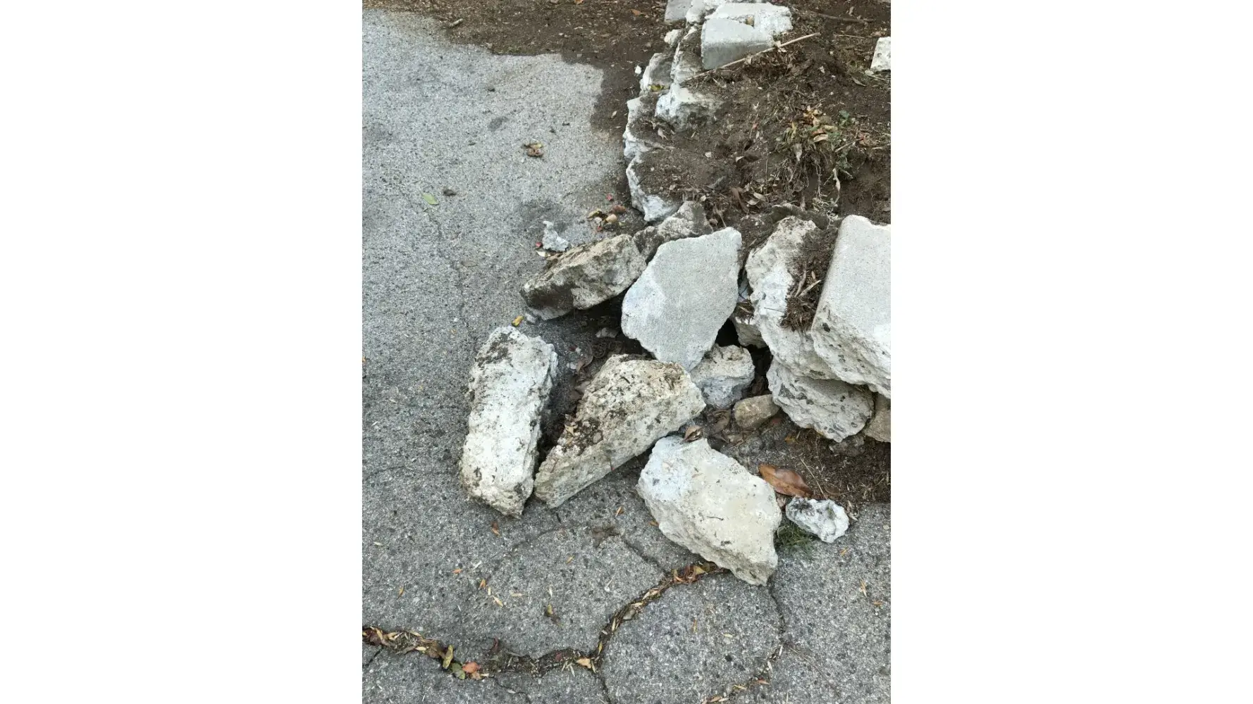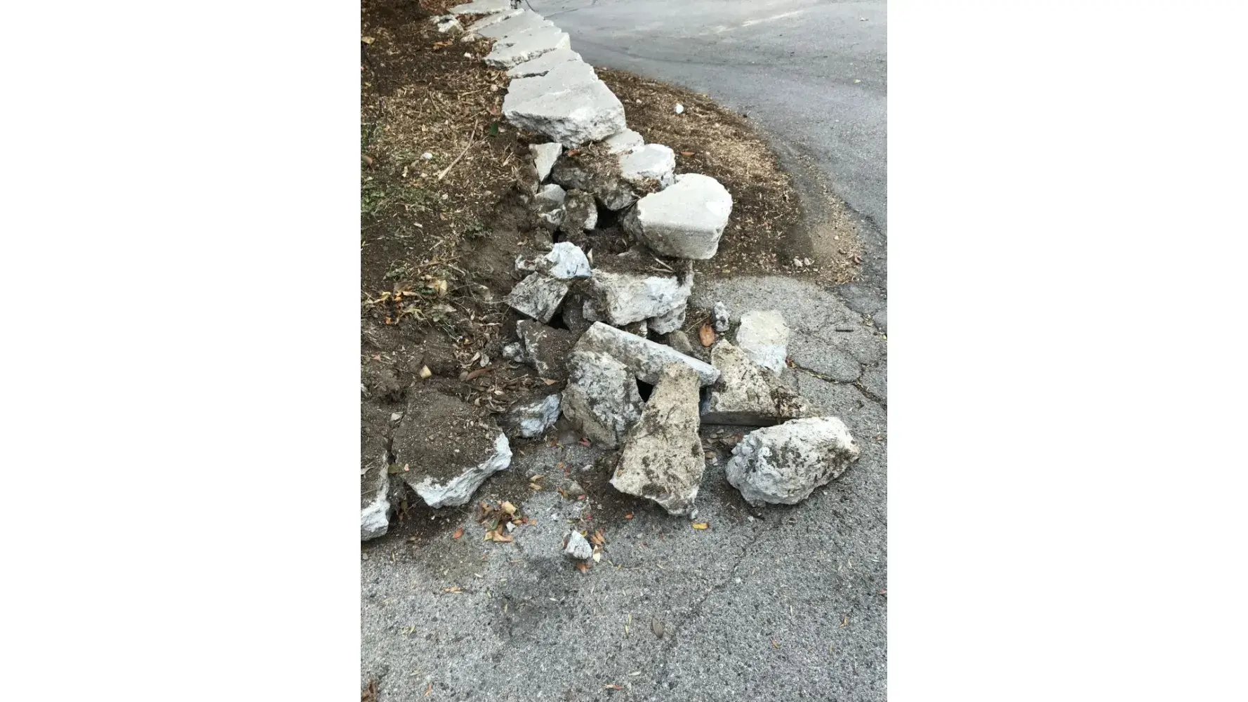 A small package was delivered perfectly to my front door on Nov 2, 2022, 1:40 PM - I received an email while I was at work (see below) but the driver's truck destroyed a stone wall at the edge of my driveway. I have neighbors who noticed the damage that afternoon & reported it to me. My car was the only other vehicle to come & go the entire day - no one else came onto the property. Looking at the photos I submitted the tire tracks are obvious, & my dog in 2 of the photos gives good scale reference to the size & weight of those stones. Inspection of the vehicle used delivering to my home that day would clearly show damage & verify my claim.