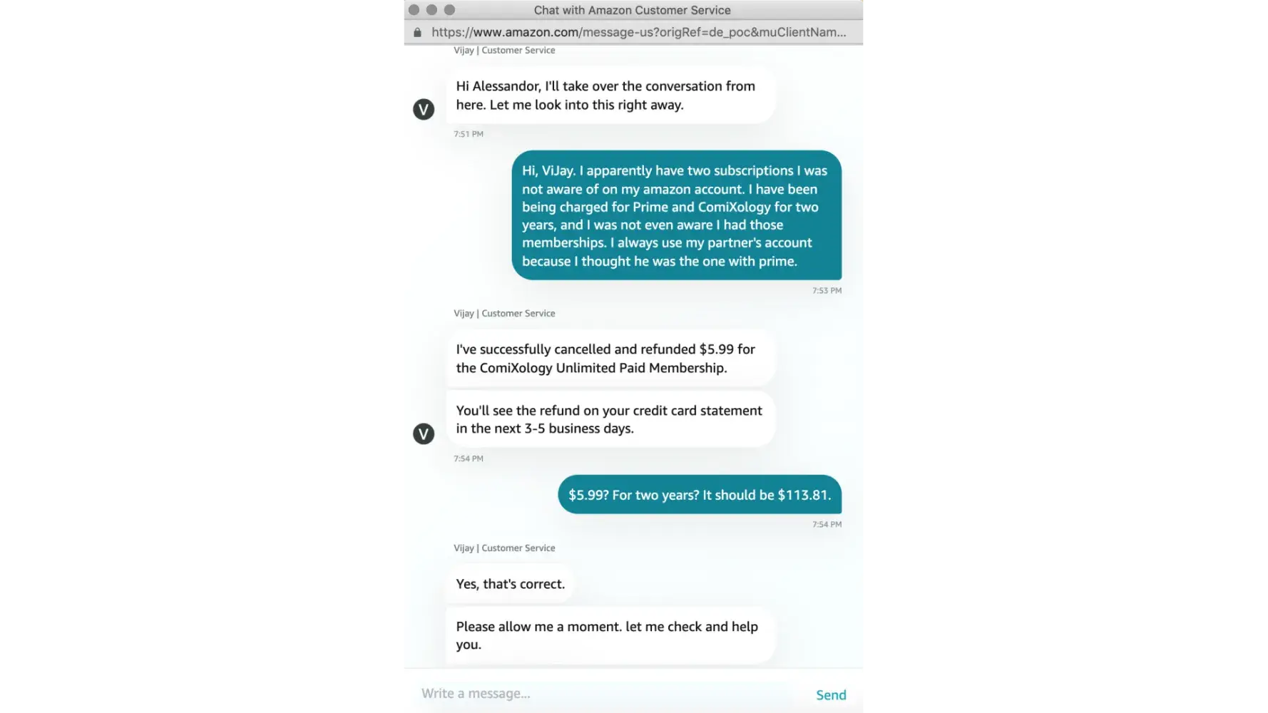 Charged for Prime and ComiXology subscriptions without my knowledge or consent for almost two years.