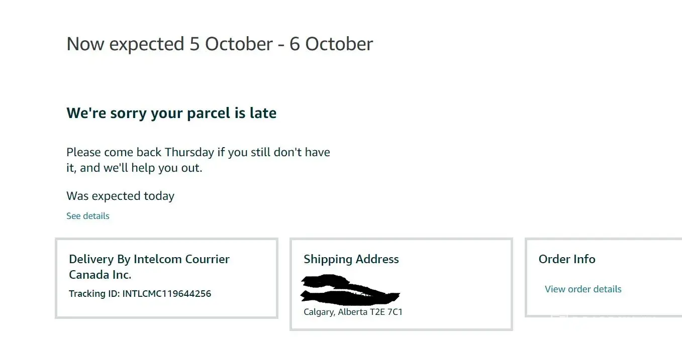 Desired outcome: Stop using these Intelcom people to deliver my packages, always use Amazon or other, it's never late when it's someone else delivering.
