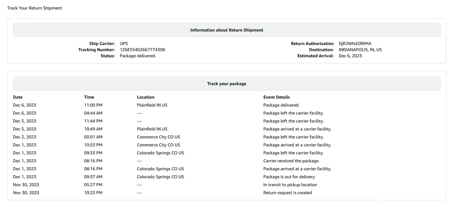 I contacted Amazon who suggested that the status had been updated prematurely and I needed to wait for a couple of days as they were unable to take action immediately. (LIE 2)