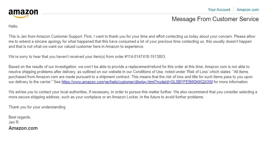 I filed a claim with Amazon. It got fowarded to "ARC". They say that unless I was there to photograph the delivery, they "must" deny my claim due to their policies. I was basically called a liar. Why would I do that? They said they are just a third party and refused to help.