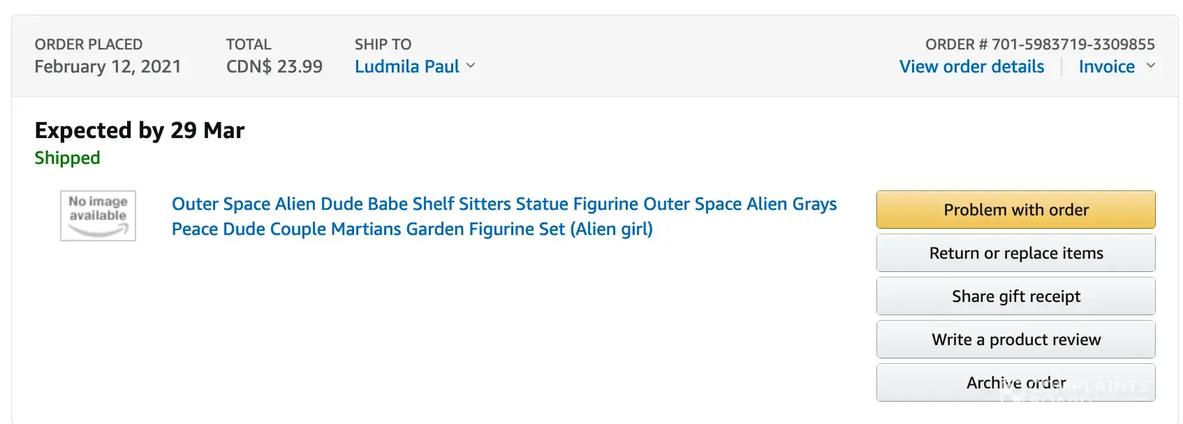 Order was placed on March 29, 2021, I never received the order.