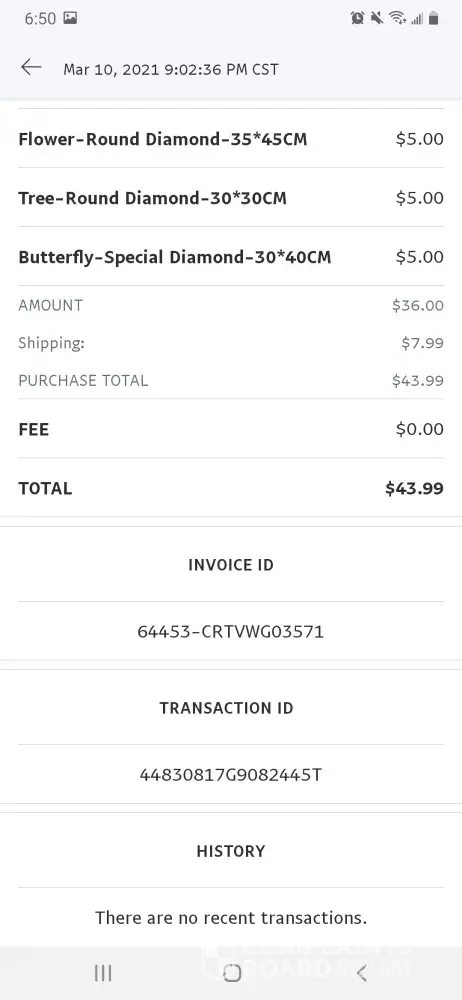 I paid for 5 products from Chinatera limited from Facebook advertising which was $5 per diamond painting and payment was through PayPal. I received a shipping label for usps three days later but usps says has not received product, now 12 days later. It gives address of Melrose Park Illinois as where the shipping label was created. There is no contact information in PayPal or post office. O have no received items.