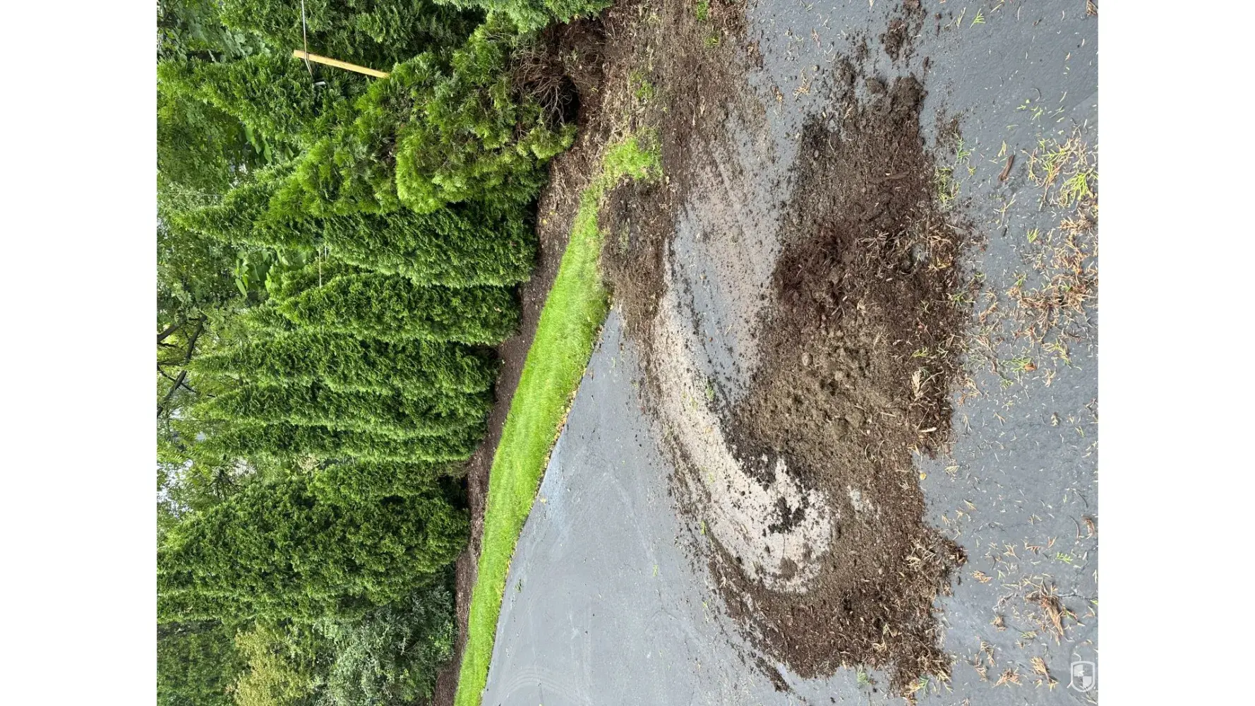 In moving the Amazon truck back and forth, the truck backed into arborvitae landscape trees and knocked them down pulling up the roots and also damaged grass of the lawn in the landscape area.