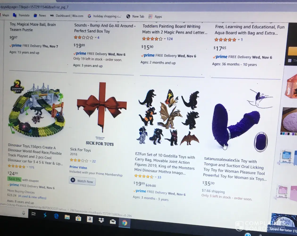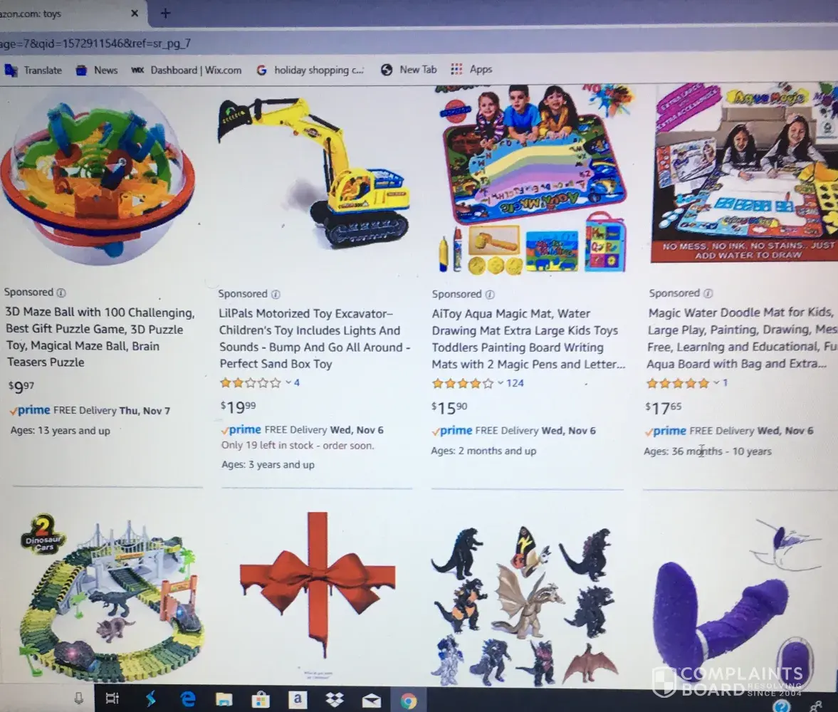 This is a very serious complaint and concern that we are issuing to amazon we hope that this complaint would be resolved immediately my wife was browsing on you guys website for christmas gifts in the toy section and this is what we seen which is very disturbing