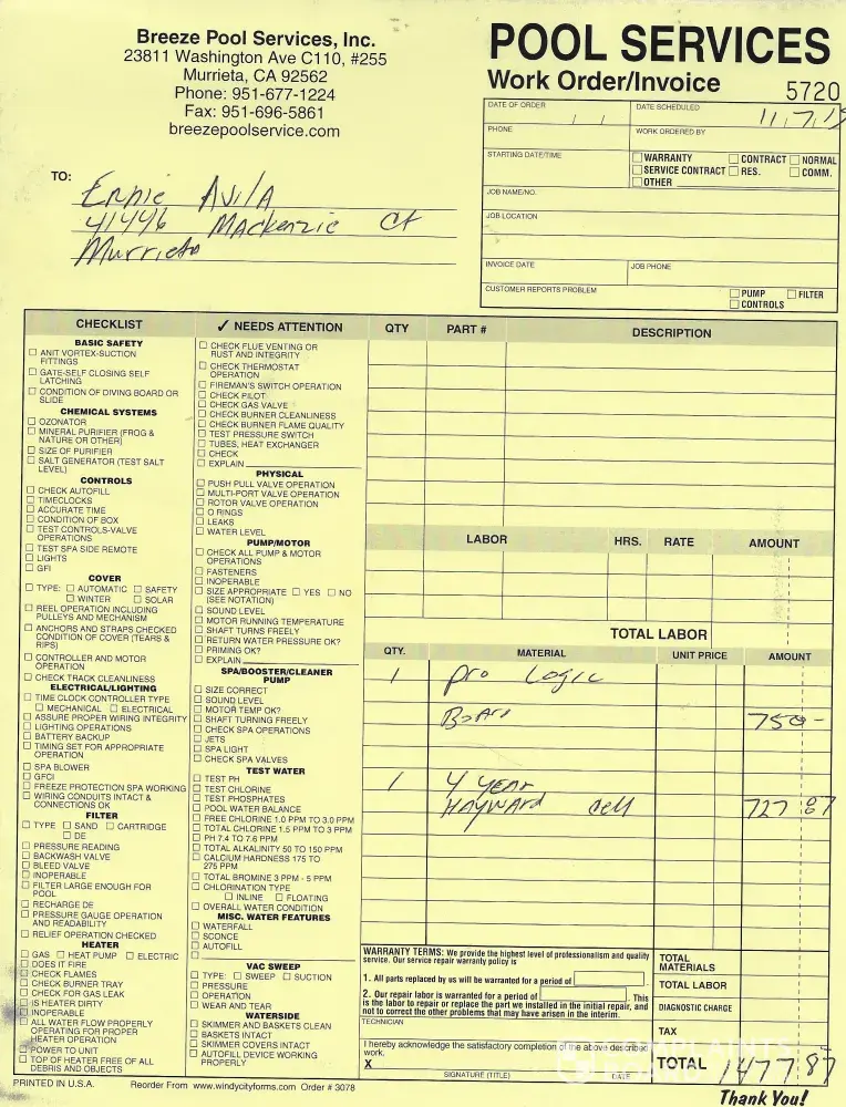 After purchasing the first unit, after it was installed it would not generate Chlorine. I had a second unit sent to me, and the same thing happened. I hired a local professional to check it out, and he said the first Bluework BLT-15 Generated fried my mother circuit board. This forced me to purchase a Hayward unit, and replace the circuit board. Breeze Pool Service 951677-1224 Paul Palacios Work Order #5720 adted 11/7/2019. I am owed $750 for having to replace my board, which I still have.
