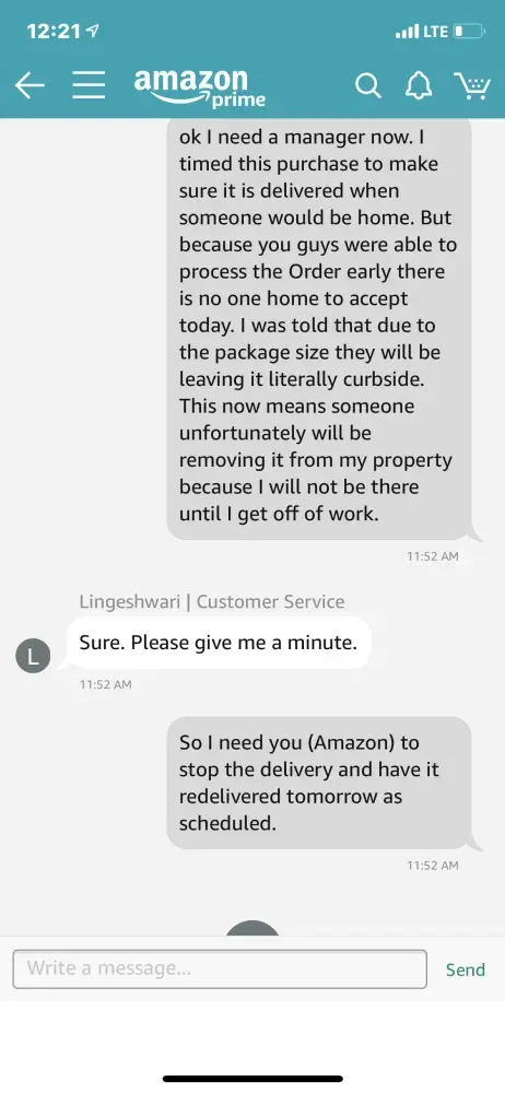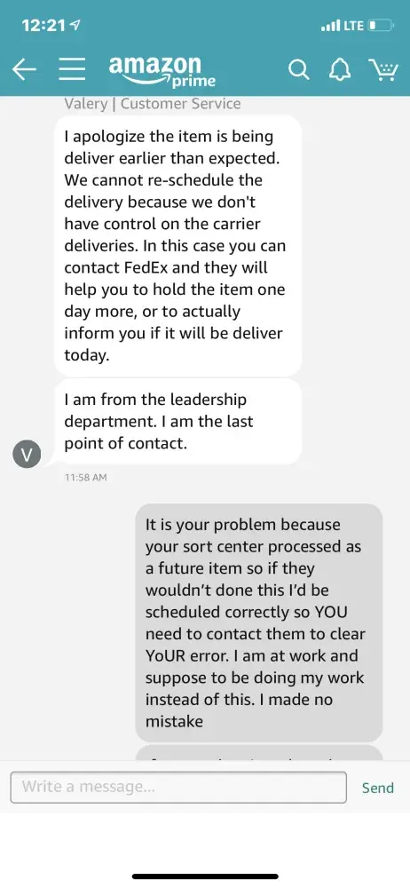 Promised a delivery date, had arranged for someone to be there on that day and then without notice they decided to ship my item a day early. I had to use my last paid day off to be there and now I'm out that day of pay. All I wanted to know was if they would reimburse me if the package was stolen or lost and it was a run around with three different agents. Terrible customer service who had no clue what is really happening.