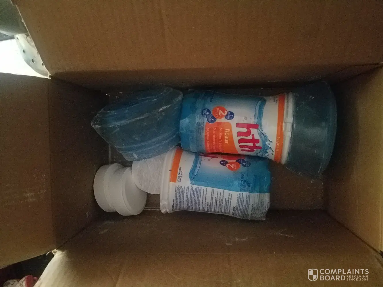I was at my grandparents and he received an amazon package through ups. When he opened it, the chlorine containers were badly busted up, dented, and the chlorine tablets had come out into the box and some had been reduced to powder. The container that was supposed to be used to float on top of the pool had to be fixed in order to work after the careless handling of the package. They were very disappointed and so am I of the condition the package arrived in.