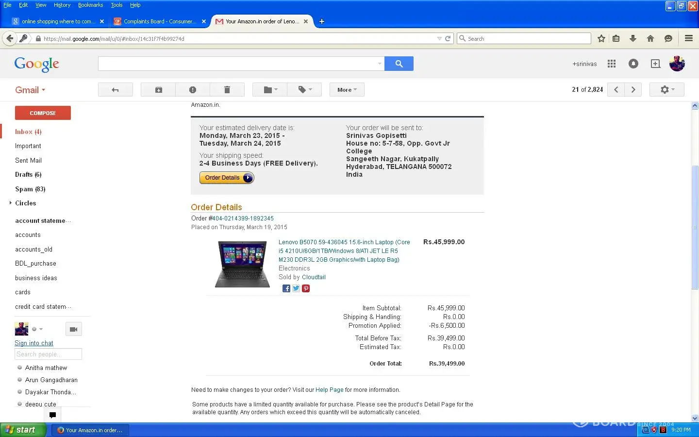 I purchased a Lenovo Laptop (Model B50-70) through amazon.in couple of days before and received the product on 24th Mar 2015. One year of warranty was offered at the time of purchasing. But when checked in the Lenovo site for warranty, i was shocked to know that the product is in use since March 2014 (means more than year) and the warranty left is around 282 days. not 365 days.