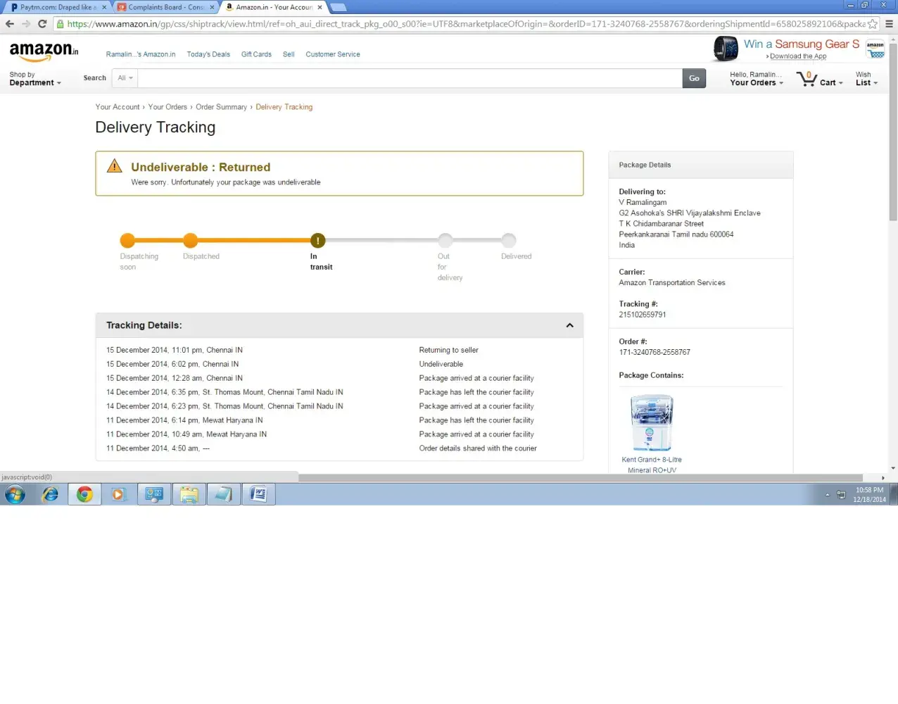 15 December 2014, 11:01 pm, Chennai IN Returning to seller