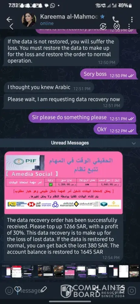 لقد قمت باايدع مبلغ واكمل ثلاث مهمات ولكن الموض٠لايعيذةد اموالي ولا يعيد رمز الاسترداد الخاص بالاموال ومعملته ليس جيده معانا