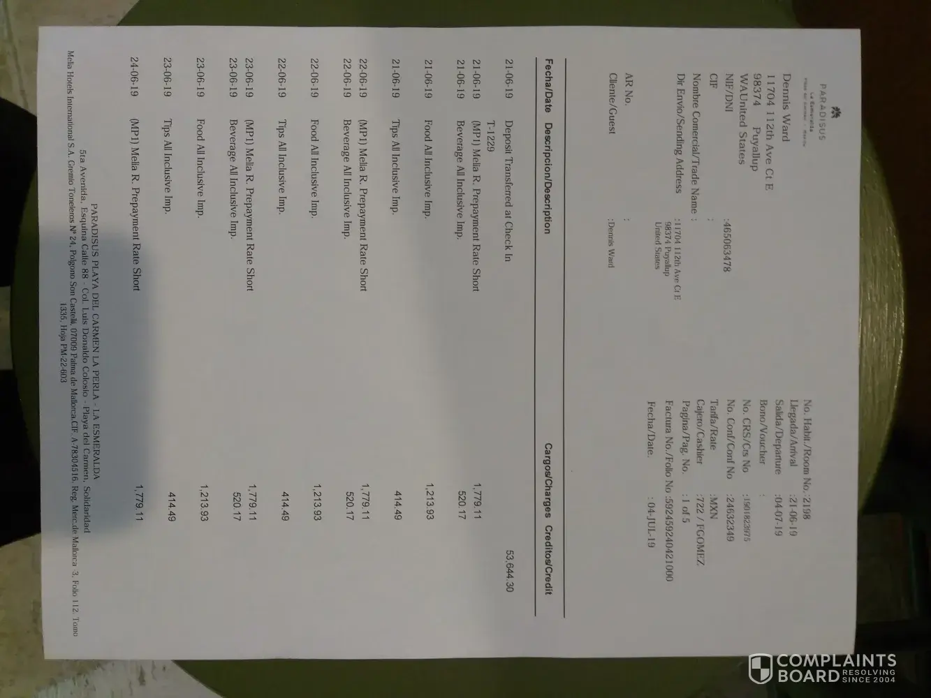 flight #2473 was cancelled on June 19th causing us to lose one day of our vacation. I had a nonrefundable resort reservation at the Melia resort in Playa del Carmen. Total cost of the 14 night stay was $2818.80- or $201 per day. Also, one day parking was $8. An Alaskan flight to DFW left Seattle at approx. the same time and was not cancelled. I am asking for a refund of $210 for one day of vacation lost. I am not asking for any compensation for all the other inconveniences. You can verify my flight with AA record locator CHAUOR. My resort was the Paradisus Playa del Carmen La Esmeralda booking reference [protected]. Their phone # is [protected]. You may call them to verify.