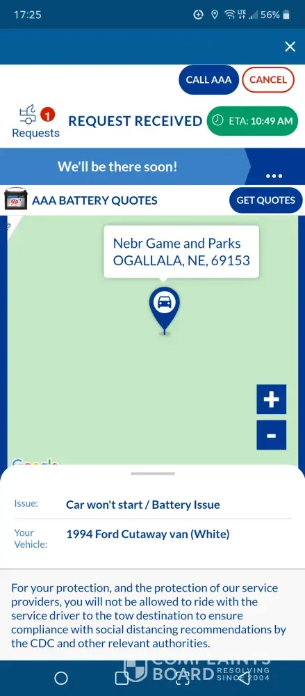 I am livid with their response to my emergency and the false sense of security knowing AAA roadside service to be there for me when I needed them.