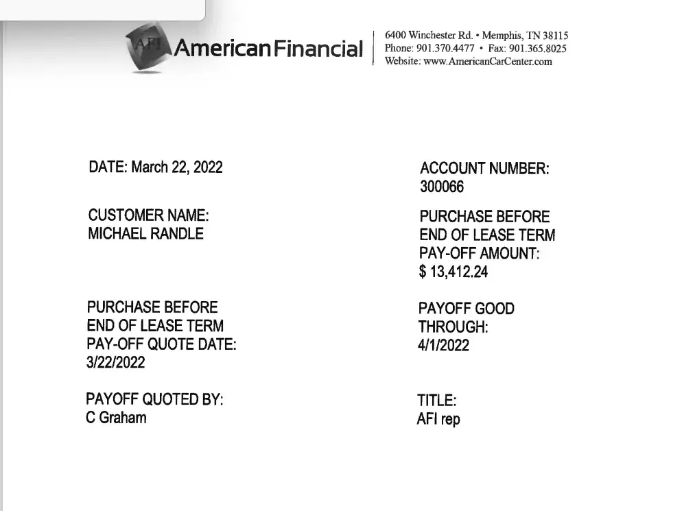 After voluntarily surrendered the vehicle to American Car center, I was told that I would have a balance, which I was fine with, I had no problem paying the price for dealing with these scam artists. I was put in touch with a American Car Credit redemption agent Michael Moncrief. An agreement was made that I would settle for $2200.00 with payments of $200.00 a month until the debt was satisfied. However, when I asked for a copy of this agreement in writing on a company letterhead, Mr. Moncrief promised me that I would be provided with it but I have yet to receive this document, this agreement was made in October of 2021. I asked Mr. Moncrief for receipts of received payments that shows that settlement amount and the remaining balance, once again he promised me that I would get it but I have not to date received any correspondence, electronic or otherwise from anybody at American Car Center.