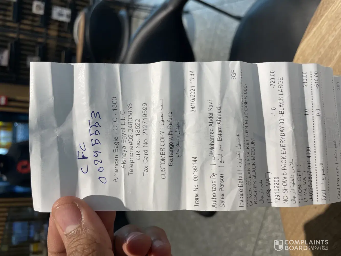 I have purchased 12 items from American eagle and I have an issue with one of these items I have went to the store in order to replace this item but I was surprised from the store manager way (Emad)of talking and handling my issue he was talking in a very bad way and he refused to replace my item, I have called the customer service and I have opened a complain (2146040) but unfortunately the same reply that they have returned to the store manager and confirmed that the item has no issue and it will not be replaced they offered 20% discount promo code but I have refused, Could you please anyone support me and give me my right !