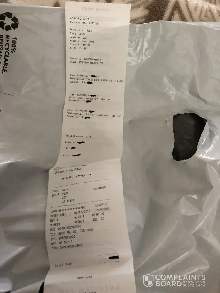 On April 30th 2019 i boght a pear of jeans in American Eagle store, Grand Canyon, Haifa, Israel.