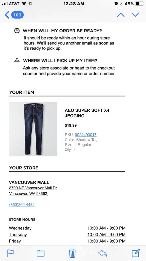 I used to be a loyal American eagle shopper until two years ago. I bought some sweatshirts online that were to big. I was told I could return them to the store in Vancouver wa. I get there and was told because I bought them with PayPal through your website I could not. Never shopped there again. My sister in Michigan called and asked me if I could pick up some pants at the Vancouver store because their store was sold out. I went there today where they had them held in her name they charged me 29.99 instead of the listed held price of 19.99, even though I had a picture add 19.99 being held at Vancouver mall. Why is your customer service so bad?