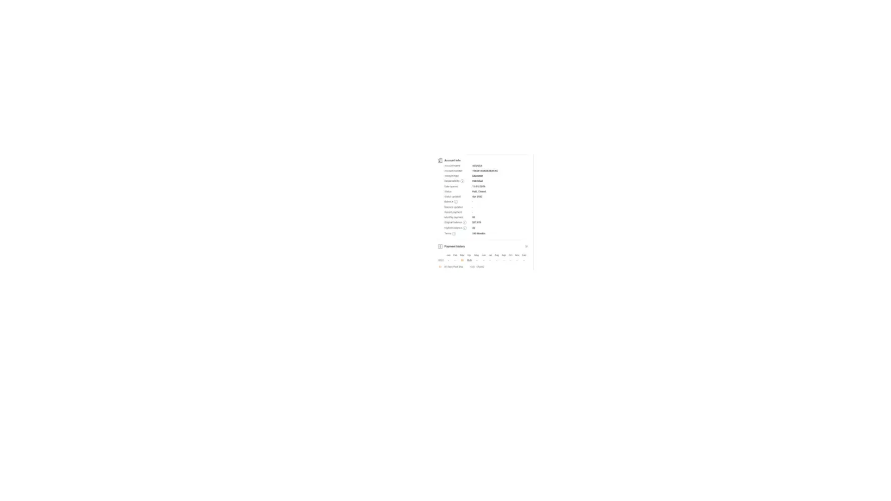 I paid this loan approximately 10 years with no 30-day late payments. In March 2019, I missed a payment, not because I didn't have the money, but because I went through a VERY traumatic experience and simply forgot to make the payment. I was not penalized for the 30-day late payment, but my mom was, and during the time she was trying to buy a house. She and I both contacted AES and we were told by an extremely rude representative that we shouldn't expect "handouts" for lack of a better word. He pretty much asked why should AES help us since the payment was late. I asked that he just remove the 30-day notice from my mom's credit report so that she could get her house and penalize me, but I wasn't successful. My mom was penalized for my mistake, and had to wait 6 months for her score to go back up, so she wasn't able to get the house that she initially wanted.