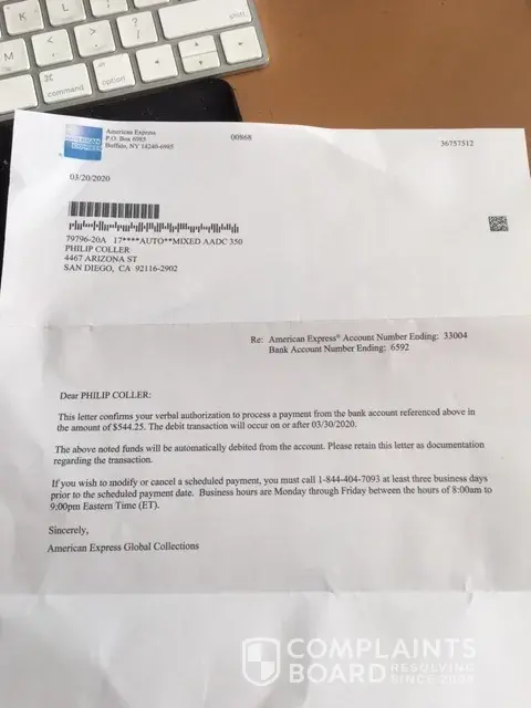 I received the attached letter on March 30, 2020 the day the amount referred to was charged to my bank account. I tried calling but the phone # in the letter but it does not does not work just silence.