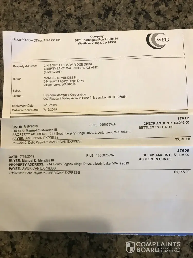 I attached a copy of the escrow's company's check numbers and amounts to cover paying the account under a payoff term. Unfortunately, America Express turned around and hit me by passing along the account to a company by the name of "Glatestone" with a file number 17-[protected]. Who just keeps on sending nine payment reports to the credit bureau, that is by the way, just digging me deeper into the ground.
