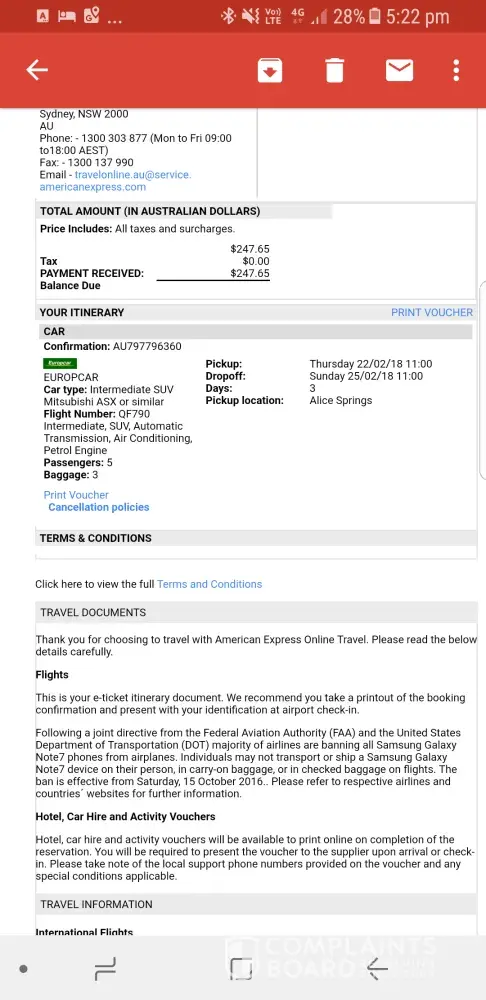 As such I request that the costs associated with the charged km of our travel in the NT are covered by AMEX and the webpage updated so that others are not subjected to the same situation.