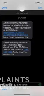 My daughter was at Lake Afton here in Kansas and locked herself out of her car. She filed a claim online around 3:30 p.m. yesterday, August 17, 2022. Her name is Brittany Behrens. The ETA was 60-90 minutes. Over 2 hours passed, and still no one showed up. The battery in her phone was dying. She called me. I called Am Fam and was told the tow company had to work an emergency and was given a 30 minute ETA. I called the Tow company (J & R Towing) and they said they don't go out to the lake. I pleaded with them to help my daughter. They said they would call the insurance company and would call me back. No call. I called them at 6:08 pm and 6:32 p.m. I even called Am Fam Claims at 5:49 pm and 6:52 p.m. I pleaded with them to help her and it was starting to get dark. I think someone finally showed up around 8 p.m. (or maybe it was later). This is totally unacceptable! She had to wait over 4 1/2 hours! Because of her frustration in waiting someone to show up, she starting hitting her car, which caused dents in her car. No one should have to wait 4 1/12 hours for service that is as easy as unlocking a door.