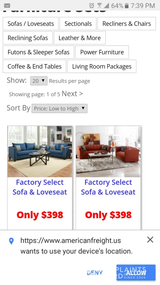 My first time ever goin to this furniture store, was a disappointment. First of all False Advertisement there are no $398 sets at the store, maybe $498. Things got worse I then looked at one sofa for $498 not a set one couch. The manager then tells the sales rep the have no more couches why dont i get the $798 sectional. And he was not going to sell the floor model. Their own sales rep admited they bait nd switch people and i should go to mathis brothers. Horrible!