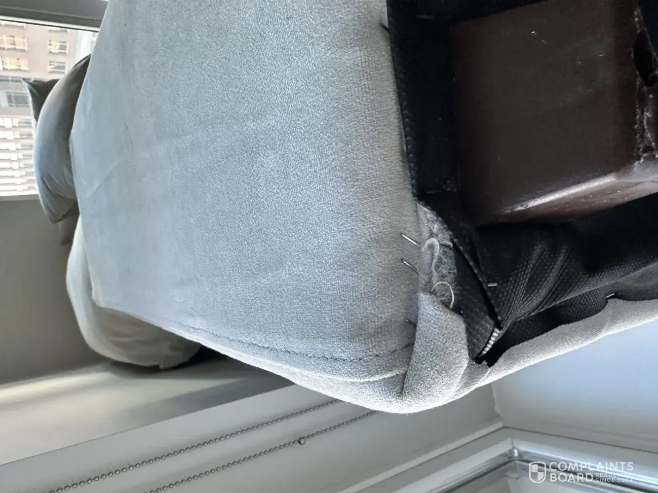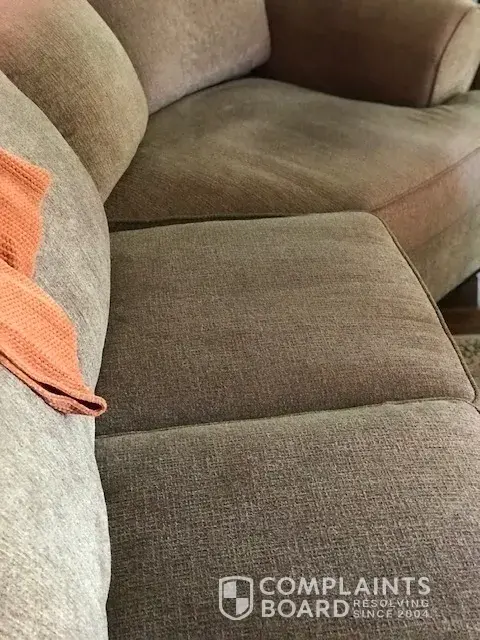 Desired outcome: I would like an investigation of the couches origin and how/where it was used, an explanation as to how I was sold a used and damaged item, and a refund of the additional money I have to pay for a simple, fair replacement.