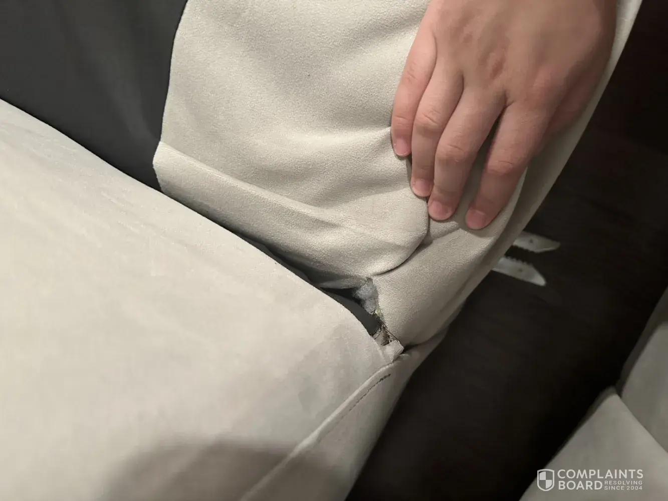We got the recliner delivered today (02/22/2023) to our home. We noticed that there is a tear in side of recliner loveseat.