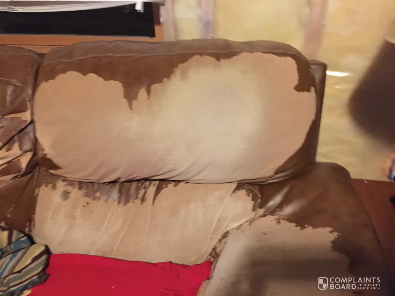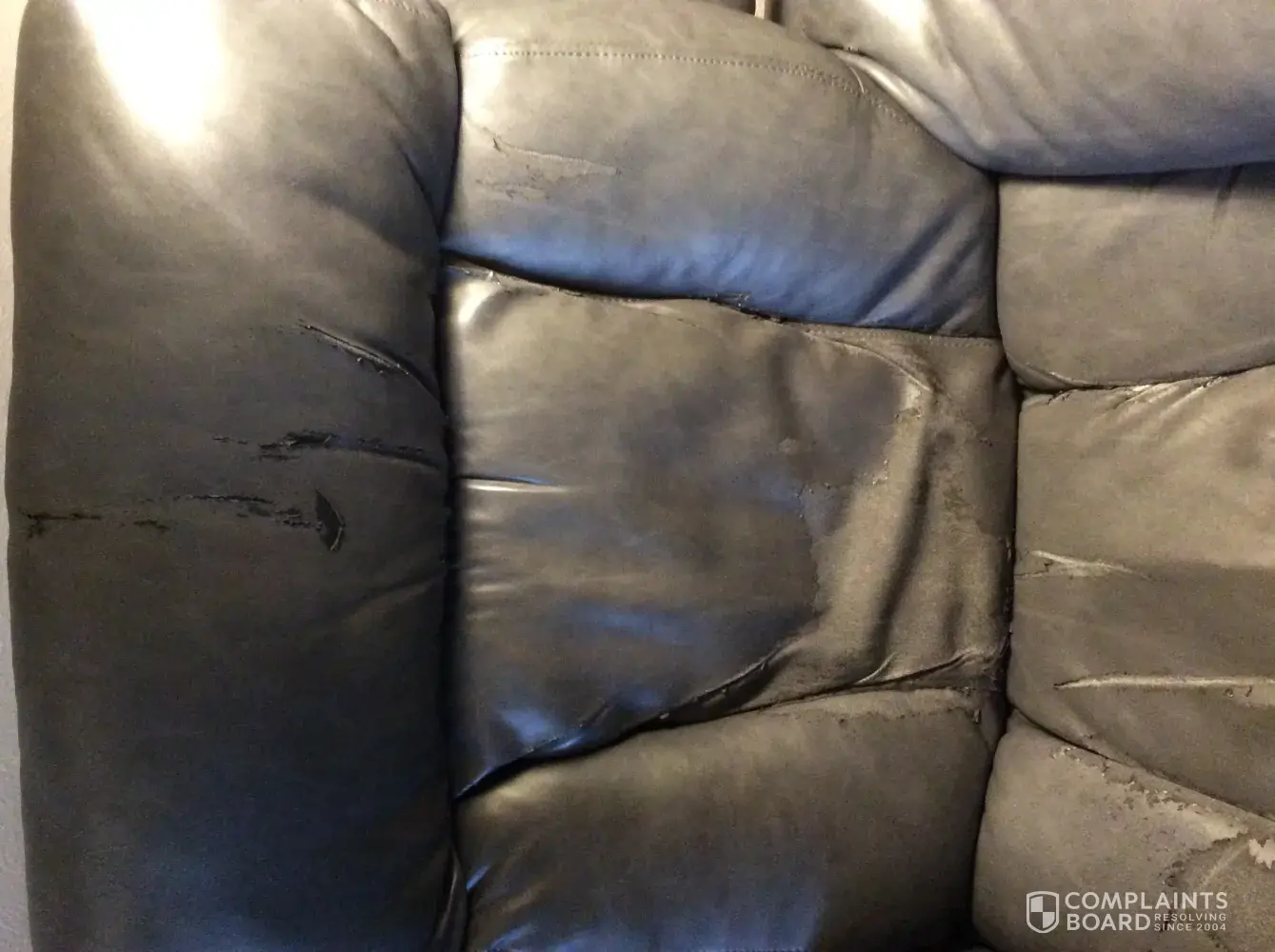 We bought sofa and chair and a half in 2010. It's completely peeled all over and has sunk so far down we have boards under couch for support. This is worst furniture that we have ever bought. Right now remodeling house so keeping. Otherwise would have places to curb years ago. It's frustrating to spend hard earned money on junk. It started out with one spot wearing away and then before we knew it peeling everywhere. It's been peeling nonstop so much I would've thought it would all be off by now. But no. It's just sticks to you and trails crumbs of coating all through the house. Very frustrated. American in peoria went out of business and with furniture like this I can see why. Not sure how you can make it right but wanted to pass on.