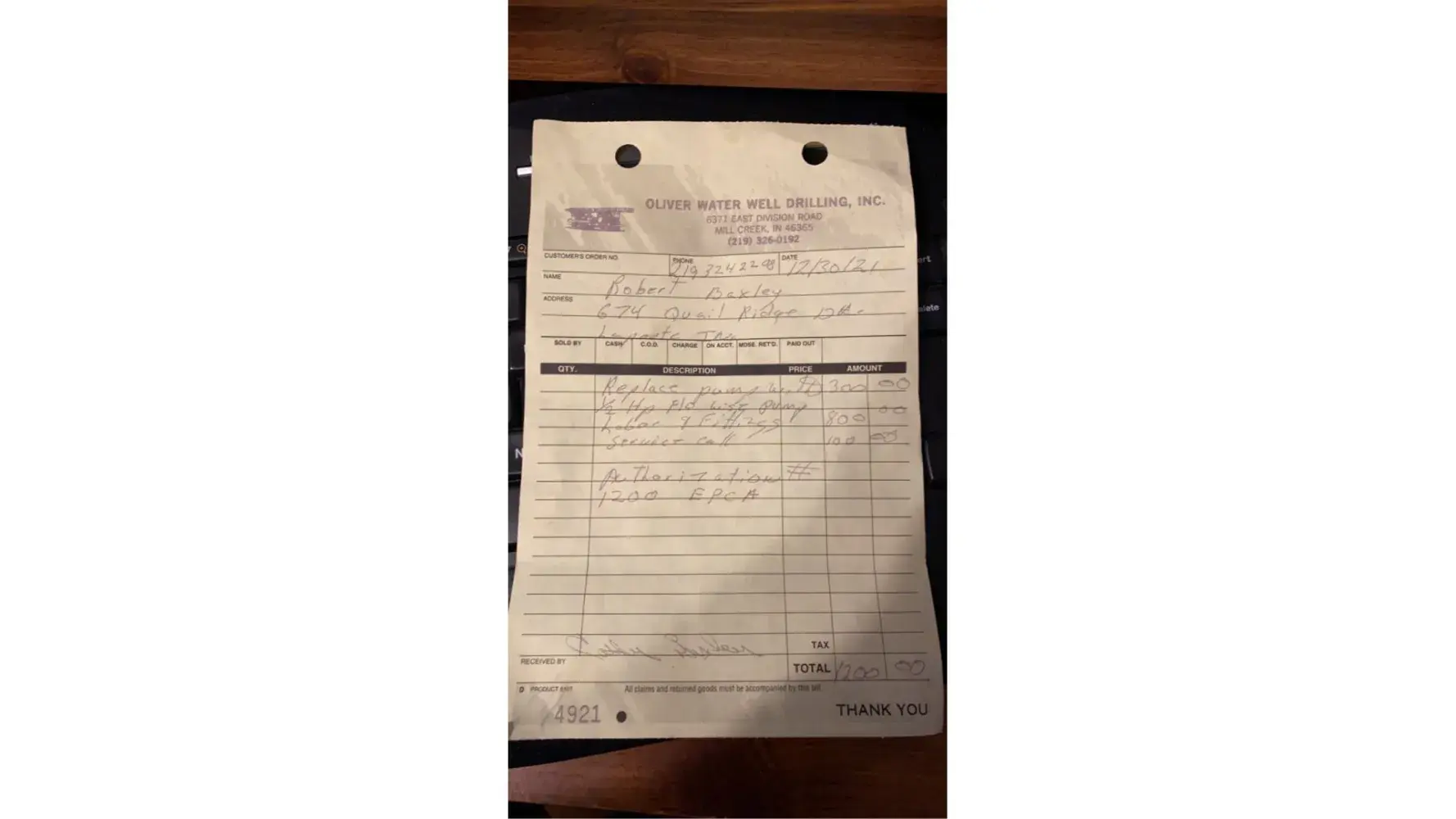 The technician said a part was needed.